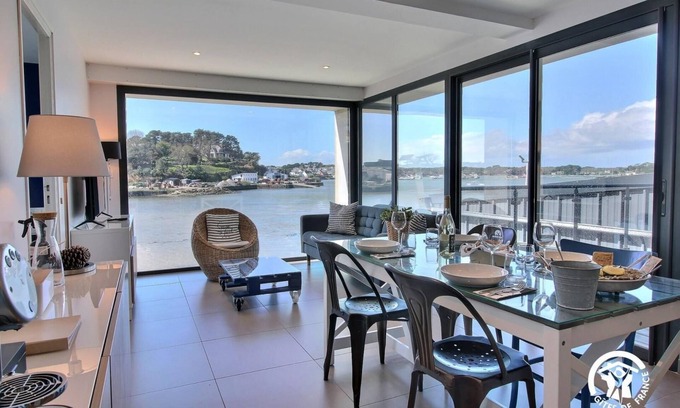 This apartment overlooking the Crac'h river (Bay of Quéhan) is located in a house divided into two gites. You just have to go down a few steps to access the accommodation. The main room consists of an equipped kitchen open to a fully glazed living room/living room (Netflix access TV). Immediate access to a beautiful suspended terrace, sea view and equipped with garden furniture. Two bedrooms with small sea view (1 double bed 140X200 in the first and 2 single beds 90X200 in the second). Bathroom with shower and sink, separate toilet. Walk along the owner's oyster building to access La Villa Jeanne, you can park in the shop car park. Gîte located below gîte 56G2338. Many advantages for this idyllic vacation spot for couples or families, ideally located a stone's throw from La Trinité sur Mer. At the heart of an oyster farm, this vacation rental, with elegant decoration, overlooks the oyster ponds and offers a spectacular view of the bay of Quéhan in southern Brittany, to the rhythm of the tides. On the site, a direct sale shop of ultra-fresh shellfish and crustaceans open 7/7, as well as a tasting area where you can savor the owners' oysters, feet in the water. Proximity to beaches and seaside activities, fishing on site, hiking trails, tennis club less than 100 m away (clay court), leisure park 7 km away...
