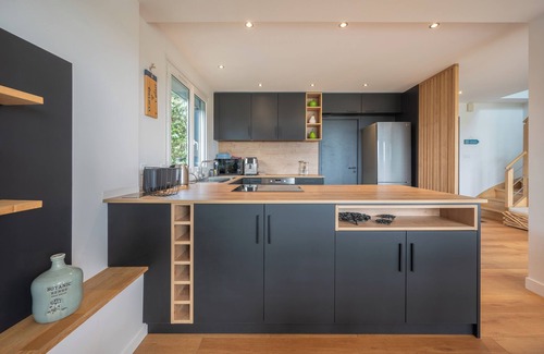 This newly renovated architect-designed house offers comfort and warmth, as well as top-quality amenities: private indoor swimming pool heated to 29°C, measuring 4.5mx2. 8 with swimming against the current and swimming bungee, 1500m² landscaped and enclosed garden with 2 large terraces, 4 tastefully decorated bedrooms overlooking the bay, ideal for families, 1 shower room on the first floor, 1 bathroom upstairs, a mezzanine with a real Bonziny table soccer and an arcade game for young and old (over 1200 games from another era!), ping pong table, Molkky game, board games, books, Netflix...