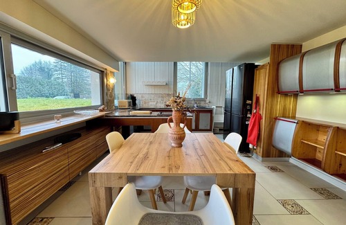Located in Bellevigny, this 4-bedroom, 2-bathroom villa lets you experience it all. Fans of nature and the outdoors will love being 6 minutes by car from Ponds Nature Park and 10 minutes from Place Napoleon. If you'd like to explore the area, you can make the 6-minute drive to Vendespace or the 6-minute drive to Les Flâneries Shopping Mall.
