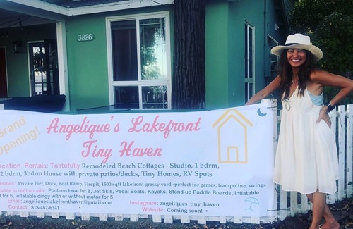 Lake Studio Cottage ...Inviting... relaxing...cozy... Angelique's Lakefront Tiny Haven remodeled cottage at Clearlake-largest natural lake in CA. Sits on 1 1/3 acre unique property with access to private pier, dock and boat ramp. Common usable grassy yard with beach area. Perfect for family with watersports toys on site available to rent-pontoon boat, jet/ski boat, tubing, stand up paddleboards, kayaks, pedal boat- so much to do - spend quality time with friends and family. Other amenities: trampoline, corn hole, croquet, ping pong, card games, swings and hammocks and muh more . Portable firepit & BBQ grill availalbe to guests