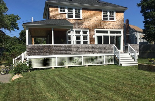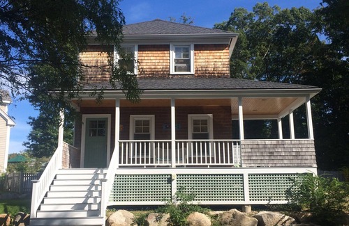 5 minute walk to private Manchester Beach, village shops & restaurants! Enjoy the cool ocean breeze through the double french doors of this bright sunny open concept modern Beach Bungalow!! Walk out onto a large porch to sit in sun or under the covered Farmers porch out on outdoor sofa & teak patio set for lunch or BBQ. Enjoy the nice yard for kids or dog to play and hot outdoor shower for after beach. The property is surrounded by trees that give great privacy and a long driveway offers plenty of parking. Short walking or biking distance to: village, beach, bay, pier, shops, restaurants and beautiful sunsets while walking your dog on Shore Road. Explore all the natural beauty and history of Cape Ann: Gloucester, Rockport, Essex and Manchester within a short drive and without the traffic of Cape Cod!!.Take a rainy day train ride, along the picturesque North Shore, to experience the amazing old history of Salem & Boston. A real New England Classic Summah beach cottage for your summer family vacation!! Grey Beach (a.k.a. Magnolia Beach is a mixed availability beach w/the East end public for your use to sit, swim, kayak, etc.)