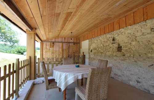 In the heart of a plantation of hazel trees, facing the valleys of the Pyrenean foothills, the Labourdette gîte has taken place near the owners' house. This small independent house full of charm is practical and functional, on the ground floor (access steps). The private entrance is located at the back of the house, via the pleasant covered terrace which has no vis-à-vis, to fully enjoy the outdoors in complete privacy (garden furniture, barbecue). Equipped kitchen (induction hob, electric oven, microwave, fridge-freezer, dishwasher), dining area. Living room (TV, fireplace equipped with a wood stove) opening onto the terrace (steps to climb). 2 bedrooms (1 double bed, 2 single beds). Beds made for your arrival and towels included. Shower room (Italian shower, basin, washing machine), separate wc. Electric heating in supplement and 1st outbreak of wood offered. The village of Lasseube is close to the towns of Pau and Oloron-Ste-Marie, in the region where the sweet white wine of Jurançon is grown, the vines of which you will see all around. Many hiking trails start from the cottage and you will appreciate the green landscapes of the area.