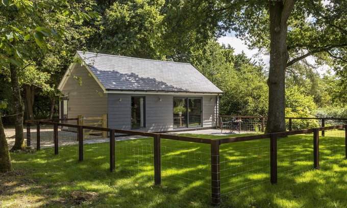 Step through the door into a beautiful well thought out open-plan kitchen, dining and sitting area. Cosy up on the sofa and enjoy your favourite film or get lost in a book whilst being surrounded by beautiful modern furnishings and décor that blend to give a country chic feel with a unique rural edge. Full height windows dominate the rear wall, flooding the natural light through and allowing uninterrupted views through the woodland. The skilfully crafted kitchen area is well-equipped for even the keenest chef and the dining table is well placed at the window to make the most of the woodland location. The bedroom is tastefully furnished with a bespoke king-size bed, beautiful linens, built-in storage, baskets and hanging space for clothes; and leads through to a modern en-suite shower room. Outside, the rear patio is furnished with a table and chairs looking out to the woodland and is an ideal space for a morning coffee whilst listening to the birdsong or after dinner drinks in the warmer months.