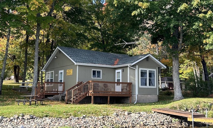 LAKE FRONT---NEWLY RENOVATED!!!! A fisherman's paradise with a cozy cottage the whole family will love! GREAT LOCATION on historic Lac Vieux Desert. This gorgeous 4,000 acre lake has it all...amazing fishing (of some of the most desired fresh water species, including tiger muskies), kayaking, water sports, relaxing or easy fishing for the kids by the crystal clear shore. This cozy cottage is conveniently located to nearby supper clubs, bars, atv/biking trails. It's also just a short drive to Eagle River, a casino and golf resort. This fully furnished property is also equipped with a pier for 1 guest boat, fire pit, hammock, 2 kayaks and a canoe to use at your leisure!