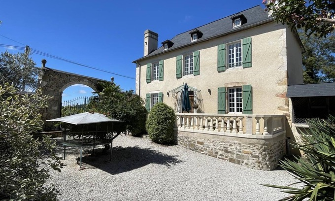 10 km from Pau, pleasant recently renovated house in a typical Béarn enclosure facing the Jurançon vineyards and the Pyrenees mountain range. Beautiful green environment. Cottage offering 8 beds 4 bedrooms 1 bathroom. On the ground floor: Equipped kitchen (gas hob, electric oven, microwave, small fridge freezer), adjoining cellar (washing machine, dishwasher). Living room (TV, internet box, wood insert). WC. Floor 1: 2 bedrooms (1 bed 140, 1 bed 180 with TV). Bathroom. WC. Attic floor 2: 2 bedrooms (1 bed 180, 2 beds 90). Gas central heating at an additional cost (flat rate €9/day). Wood provided at an additional cost. Sheets and bed linen provided. Bathroom linen rental. Private enclosed courtyard, terrace, garden furniture, barbecue. Car park. Unfenced land (picnic table). The lodging took place in the old dwelling house recently renovated. The courtyard of the enclosure is reserved for you. In the outbuildings, a semi-detached barn with different access and without vis-à-vis is a dwelling occupied by the owner's parents who live on site. Sale of farm and local products on site (wine from Jurançon, Madiran, pâtés, rillettes, foie gras, etc.). Restaurant and small shops in the village, 3.5 km. Gave with landscaped banks, lake for walking, cycling and fishing nearby.