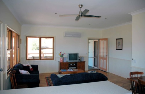 Immaculate, self contained two bedroom country style cottages featuring open plan kitchen, lounge and dining room. Relax and enjoy magnificent valley views framed by rugged timbered ridgelines from the spacious wrap around verandah. Share your weekend escape with abundant native wildlife as you leave the pressures of urban living behind you. You will comfortably accommodate 4 to 6 people with an extra fold up bed available if required. Conveniently located in the Wollombi Valley, Laguna Cabins are only 8km from the historic village of Wollombi and an easy 30 minute drive from the heart of Hunter Wine Country.