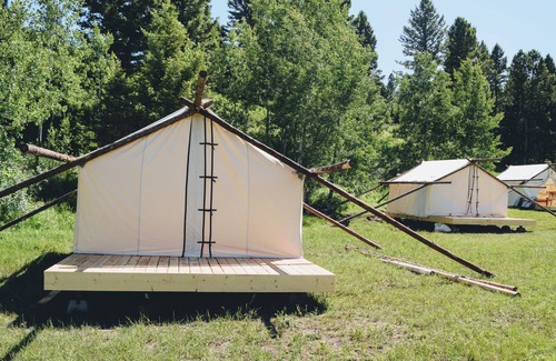 The ranch features exceptional amenities to enhance your special day, including the Center Barn for your indoor receptions and the outdoor pavilion cooking area equipped with BBQ options, ensuring your celebration is both comfortable and enjoyable. Guests can stay in two fully-equipped lodges: Brackett Lodge, which sleeps 14, and Bridger Lodge, accommodating 10. Each lodge includes kitchens, shared bathrooms, and cozy living spaces, with Bridger Lodge even boasting a game room for some post-wedding fun. For a unique experience, indulge in our seasonal glamping tents located along scenic Brackett Creek, offering rustic charm without sacrificing comfort.