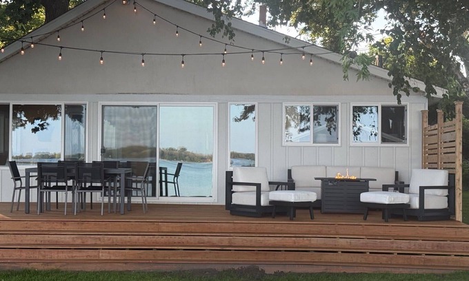 NEW! Enjoy a relaxing stay at this charming 2-bed, 1-bath level lakefront property offering direct access to the water and a variety of outdoor amenities. Whether you're looking to fish, paddleboard, or simply unwind on the private sand beach, this property is perfect for your next getaway. Located just 15 minutes from town, you’ll have lake life while still being close to local attractions.