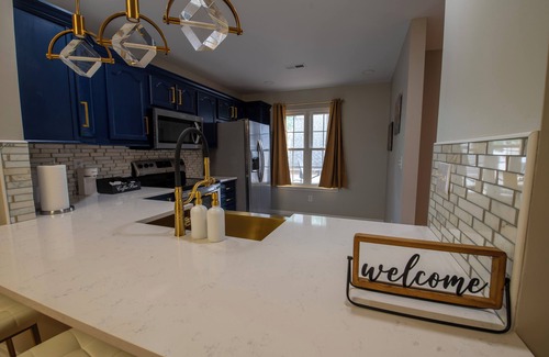 Welcome to Laid in Luxury—a modern 2BR/2.5BA townhome with a private garage. Relax in designer blue-and-gold interiors, stream on the smart TV, and wake up to a stocked coffee bar. Fast Wi-Fi, fully equipped kitchen, and in-home washer/dryer. Self check-in. Central to Charlotte: ~10 min to UNCC, ~15 min to Bank of America Stadium, dining, breweries, and Uptown. Perfect for game days, business trips, and weekend escapes.