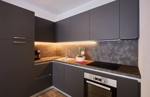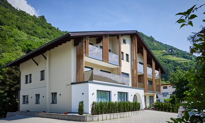 The Residence Laitacherhof, opened in May 2018, houses new spacious, stylish and well-equipped apartments to relax. The apartment type A has 1 double bedroom, 1 kitchen with double sofa bed, 1 bathroom. and balcony or terrace. The residence is a 5-minute walk from Klausen town center. The private outdoor swimming pool cools you down on hot days, the warmth in the wooden Finnish sauna and steam sauna relaxes body and mind. Large lawn and small children's playground available.
