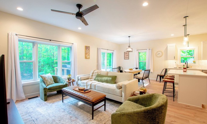 Brand-new 2BR/2BA retreat just a 5-min walk to Sanford Lake access with grills, a park, and swings—perfect after kayaking or swimming. Relax on the wooded deck or explore nearby trails. Only 25 min to downtown Traverse City and 35 min to Sleeping Bear Dunes. Ideal basecamp for adventurers, families, or couples looking to enjoy all that Northern Michigan has to offer. Modern comfort meets outdoor fun in beautiful Lake Ann!