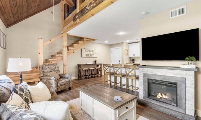 Sit back, relax, and unwind at Rustic Hickory Haven! This 2 bedroom, 2 bathroom townhome is the perfect spot for couples or small families looking to get away from the stress of everyday life. Located about 15 minutes east of the Branson Landing, this retreat is close enough to enjoy everything Branson has to offer while being far enough away to have peaceful mornings with the abundant wildlife and beautiful scenery. Whether you want to spend the day enjoying shows in Branson or lounging by the pool and hot tub- Rustic Hickory Haven is the perfect spot to spend your Branson vacation.