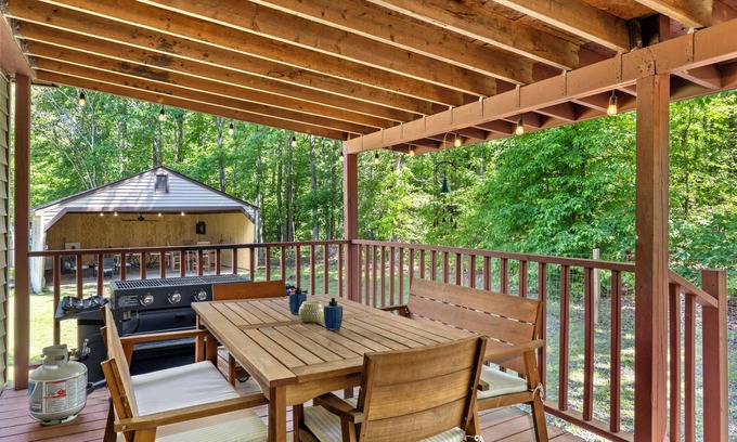 Lake Anna Rental-3min walk! Gated 3BR, covered game barn, king bed, 2 fire pits | House in Spotsylvania Courthouse