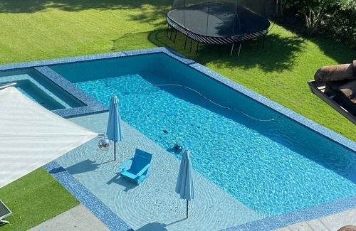 Yes, this Rivercrest house has a swimming pool. Check the Facility Overview section for details about the pool and other available facilities.