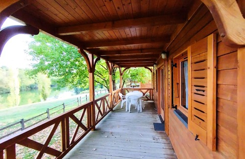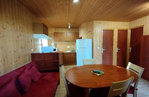 Accommodation: New!! Come and enjoy the calm and space in our Chalet Space with lake view and all equipped: Kitchen with fridge/freezer, microwave, mini-oven, dishwasher, coffee maker and electric kettle, toaster, dishes and kitchen utensils, 1 bedroom with 1 double bed 140x190 and 1 bedroom with 1 bed 1 bunk space 80x190, 1 bench in the vast living room of 13 m2 , 1 covered terrace 18 m2 with garden furniture and Transat. What to satisfy your desire for grandeur...