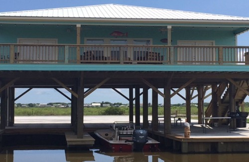 Enjoy Our 3 bedroom 2 bath camp its conveniently located on the canal at 419 Lake Breeze Dr. It is fully furnished with all of the comforts of home and sleeps up to 10 guest. The master bed room has a Queen bed and bathroom. The second bedroom has two Full size beds and The third room has two full size beds and linens are provided for each bed. Our camp offers a large top deck overlooking the canal with comfy outdoor furniture and speakers for your enjoyment. A wraparound porch, private boat slip, cleaning station, BBQ pit/grill for your "catch of the day." Each room has a flat screen TV and satellite, free WI-FI, and plenty of parking. The Kitchen is equipped with all stainless steel appliances, pots and pans, utensils , coffee pot, toaster, rice cooker, and blender. Towels are provided as well as a washer and dryer. This camp is perfect for anything from a quick fishing trip to a summer vacation. Lake Calcasieu is world class for big trout and monster Red fish. Not only is the fishing and crabbing spectacular but duck hunting in Hackberry and Cameron parish is also world class. Our camp is centrally located and minutes from the casinos in Lake Charles, Holly Beach and the Creole Nature Trails. Book a guided fishing trip, and have your guide pick you up and drop you off right from the dock of the house. This camp is sure to please and a great place to make memories. Only one boatslip is available during your stay as Owner reserves one boat slip at all times.