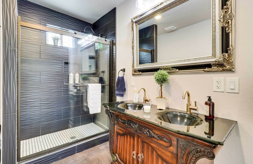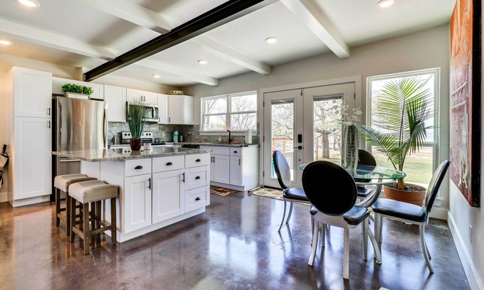 This spacious ranch-style home features four beautifully appointed bedrooms and three modern bathrooms, accommodating up to 10 guests comfortably. Enjoy outdoor living with amenities like a large patio, a charming pergola, and a cozy fire pit perfect for evening gatherings. A fully equipped kitchen allows you to prepare delicious meals while smart TVs and a second living area offer comfortable relaxation spots. Whether hosting intimate wedding festivities or gathering with family and friends, this property provides amazing indoor and outdoor spaces designed for joyful celebrations.