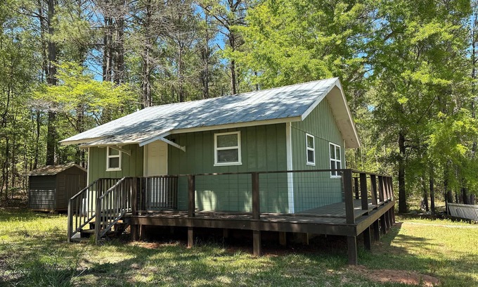 Located just 10 minutes from Callaway Gardens and Hog Mine, Gorgeous hiking tails at FDR state park, and some small town antique shops/eateries, our charming cabin offers the perfect retreat! Nestled one block from an exclusive, privately owned, spring-fed lake that we encourage our guests to enjoy! You'll notice serene surroundings and plenty of activities. We have thoughtfully stocked the house with amenities for guest use at no extra charge.