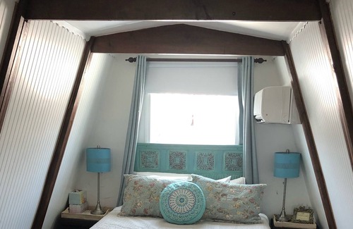 Welcome to our Vintage A Frame -5 miles East of Lubbock. 1 bedroom 1 bathroom with a sofa bed in the living room. Our A frame sleeps 4 people. Great for a couple or a couple with two kids. We have fast WiFi if you have to do a little work while you are here. We also have a Smart TV in the living room. The galley kitchen has all the amenities you will want or need. Guest love to cook in our kitchen. We have a full spice rack and condiments in the refrigerator. There is a stackable washer and dryer should you need to wash clothes after a day swimming at one if the beaches or spending the day on the lake. Upstairs you will find a very well dressed queen bed and a comfortable sitting area with a view of the lake. The stairs have drawers under the steps where we keep toys for the little ones to play with and there are books and games as well. The living area has a comfortable sofa bed couch and two leather chairs to relax and cool off after being outside enjoying the sun. Out on the large deck we have additional eating area with a bar height table and four chairs. There is also built in seating along the rail. The deck features great views of the canyon and lake. In front of the deck there is a Fire pit and grill with a seating area. Enjoy looking at the moon and stars while enjoying the fire. Our goal is for you to have a great experience at our lake getaway. If there is something you need or if anything is broken let us know and we will fix it. There is a welcome book with house instructions and ideas for making your stay memorable. For instance there are lake rentals so you can rent jet skies, kayak’s, canoes, golf carts, etc…please leave a review in our book before you check out. Enjoy!