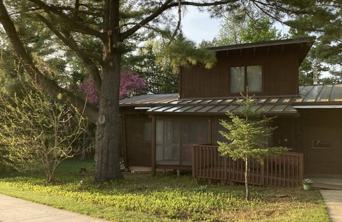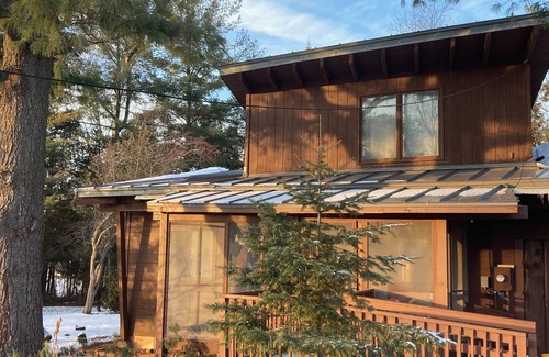 Hand-built, four bedroom home on nearly an acre of wooded land and shoreline along the 120 acre Marion Millpond (annually stocked with panfish, pike and bass, 6 mph limit). Inside, 2,200 sq. ft. of space for the whole family, or families. The dining room and living room flow together under 18 foot ceilings. Outside, two screen porches with room to dine al fresco (no bugs!) Dock your boat on the pier, cast a line, sit next to the fire and swim, all in the backyard. Have the quintessential Wisconsin vacation.