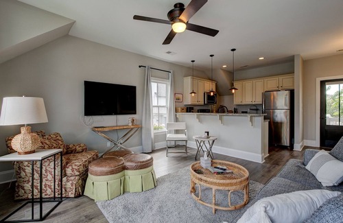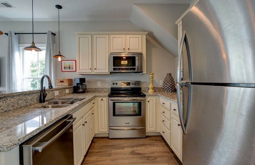 Double glass doors lead into this stylish lake cottage with charm and ambience in Lake Carolina/located in Columbia,S.C. A romantic getaway with lots of privacy. Private parking and a short walk to the lake makes this the perfect honeymoon getaway. Enjoy taking the kayaks out and relaxing in the summer sun. Afterwards, ride bikes or walk to the town center to enjoy a nice dinner and visit our neighborhood wine bar. A plush King size bed with fine linen to relax and end an amazing fun day......