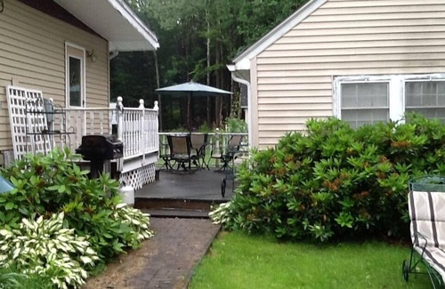 Large sandy private beach owned by our association. Free use of our boats and Kayaks. Very romantic. Queen sized bed. All linen and towels included. Trout fishing. Level lawned area with lots of flowers. Flat screened cable TV, air conditioning and heat, and galley kitchen. Furnished deck, table with umbrella. Propane Barbeque. Attached private deck.