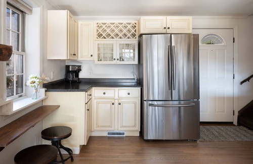 What was once a small log cabin, which was built in the mid 1800's to be servant's quarters, has been updated and expanded over many years. It is now a beautiful and relaxing century lake home with huge ALL SEASON hot tub/swim spa perfect for families and friends to enjoy scenic views and time away together. Yes it is useable all winter! Outfitted with games, a full kitchen, grill, firepit, serene views and wildlife. Three bedrooms host up to 8 adults. Also a sofa, loveseat and futon in the living room could accommodate a few young kids. There are two full baths as well and spacious decks and common areas to provide all the personal and gathering space you need. Lots of towels and basics provided.