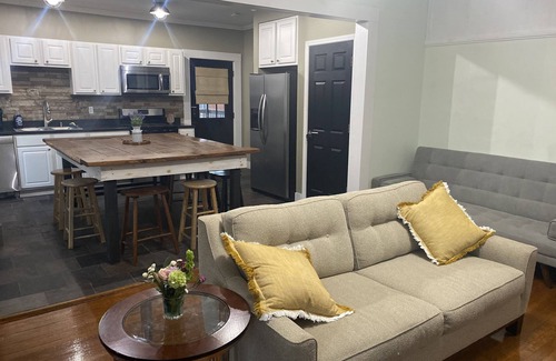 Cool house that is a mix of new and vintage! 2 living spaces, large eat-in kitchen, 8ft doors, master bed/bathroom suite, large wrap around porch and so much more! 3 tv’s with Chromecast and keyless entry for contactless check-in/out. Steps to downtown with the famous Newsom’s, Gather on Main, and Java Table.