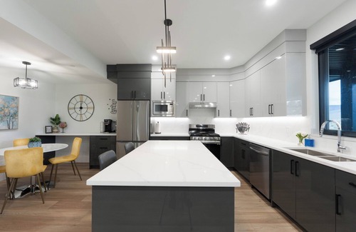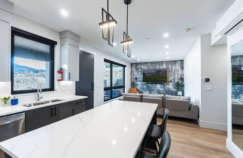 Welcome to Lake Country Vacay! Nestled in the serene Lakes community, our 933 sqft contemporary lower-level suite invites you to unwind in comfort with two bedrooms (including one with a king-sized bed), a full bath, a fully equipped kitchen, and thoughtful amenities like in-floor heating, automatic shades (blackout in bedrooms), private laundry and two workstations.