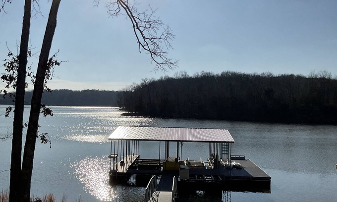 New modern build on Lake Egypt. 5 bedroom with bonus bunk house, and 5 bathroom home with plenty of room for everyone. Wrap around porch with lake views to die for. Dock with swim platform and plenty of room to fish off of in one of the best fishing lakes in Southern, Il. Ferne Clyffe State Park, Southern, IL wine trail, and Walkers Bluff Casino are all with in 20 minutes away. Plenty to do for the entire family!