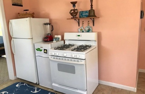 You can enjoy a full meal cooked in the ample kitchen (with full-size refrigerator and gas oven, plenty of kitchenware); cable tv in the living room with fireplace (fold-out couch for one person sleeping) with a sliding glass door leading to the deck overlooking Lake Erie. There is an enclosed porch with a cute tiki bar.