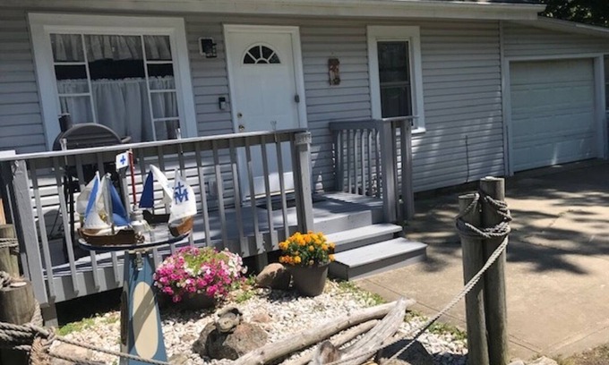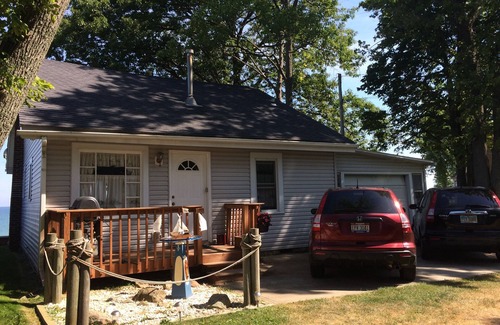Beautiful, small, lakefront cottage modestly decorated in nautical theme, overlooking the lake. This is a quiet family friendly cottage. The spectacular sunsets sold us on this home, and we enjoy the nearby area, too. Situated amongst other weekend get-away homes, this is a fabulous spot to relax on the deck overlooking the grassy hill leading down to the water and watch the waves rolling in, the Great Lakes ships passing by on the horizon.