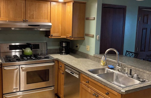 Fully Equipped Kitchen: Prepare delicious meals in the fully equipped kitchen, complete with modern appliances and ample counter space. Two dining tables offer space for 10 guests to eat!