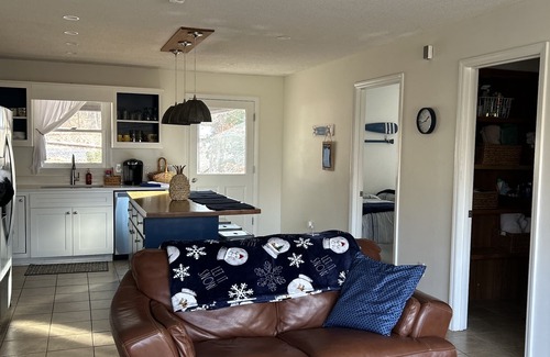 Wonderful large back deck high in the trees, just minutes from the lake. Views of the lake in fall and winter. New cabinets and quartz count tops in kitchen and master bathroom. New shower in the main bedroom. Two additional bedrooms share a new tub/shower combo. Community boat launch, swimming pool, club house, tennis courts, pickle ball court, walking trails, and basket ball goals. House sleeps 6 comfortably. Home is well sanitized before each visit.