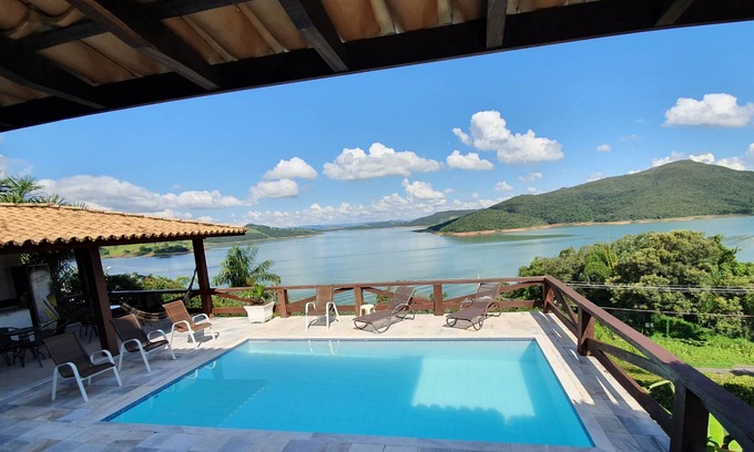 Leisure area with swimming pool, sauna, shower, toilet, barbecue, freezer, hammock to relax and a wide and beautiful view of Furnas Lake. Everything you and your class need for an unforgettable trip!