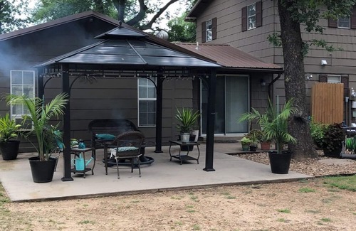 We have a very nice 3 bedroom 2 bath home next to its own beach. House has a pool and sleeps 6-8 people.....we call it Canadian River Outdoors....walk the beach and look for arrowheads, sunbathe, fish, or use it as home base for boating and fishing...located close to town where you can enjoy food at local lake restaurants, attend concerts and enjoy local entertainment, We really love to stay at home and enjoy the beach and lay by the pool. The home has a nice kitchen and living area up stairs, and also has a second TV/living area downstairs in the master bedroom adjacent to the mudroom. The grounds are always nice and manicured and feature lots of parking, Outdoor cooking space, and seating areas with fire pits to sit by at night and plenty of parking space...Great house for relaxing or go all out and play on the lake and do all the local lake things.....also great for family holidays or home base for hunting season and fishing any time of the year!