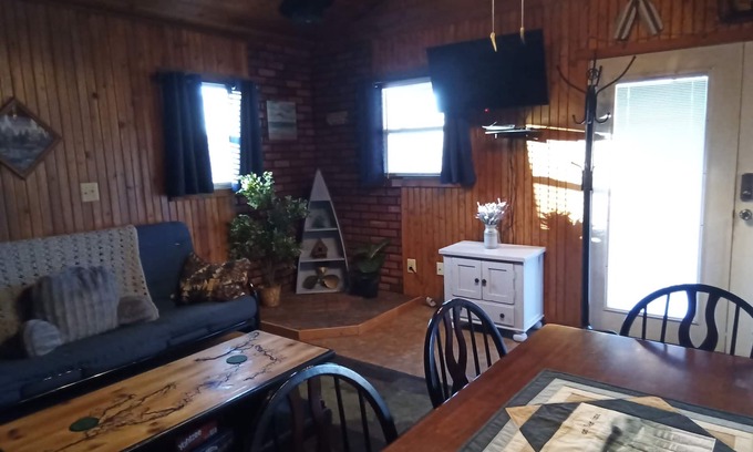 Enjoy games or flat-screen TV with streaming services and a DVD library. There are benches out by the fire pit which is down by the lake. We will try to supply firewood, but it depends on how much the previous guests use if we can get it restocked. Will have fire starter and clicker. We ask you be careful and reasonable with the size of fire.