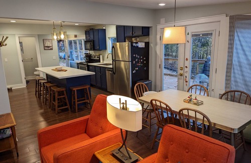 The house was recently completely remodeled. The house has hardwood flooring throughout. A brand new kitchen with a huge island that is perfect for gathering. Ample seating inside and out. Fire pit area with seating and a 'smokeless' firepit perfect for relaxing in the evening - grab some firewood on your way down at one of the many resorts near Roaring River.