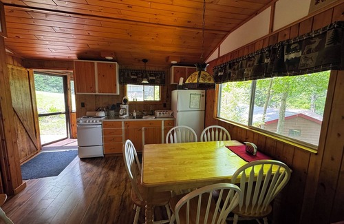 Easy Water Access ~ Just a 1 minute walk down a slight hill to reach the lower yard by the water's edge, perfect for swimming or fishing. We provide 2 adult folding chairs per cabin to bring down to the beach. Make use of a paddle boat, canoe, rowboat, or any of the 10 kayaks provided for your family's enjoyment.