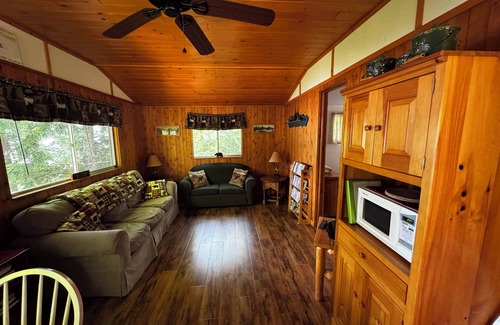 Cabin Details ~ Fully stocked 2 dbedroom cabin sleeping 4, maximum 4 adults per cabin. One bedroom with a queen bed, the other with a full size bed.