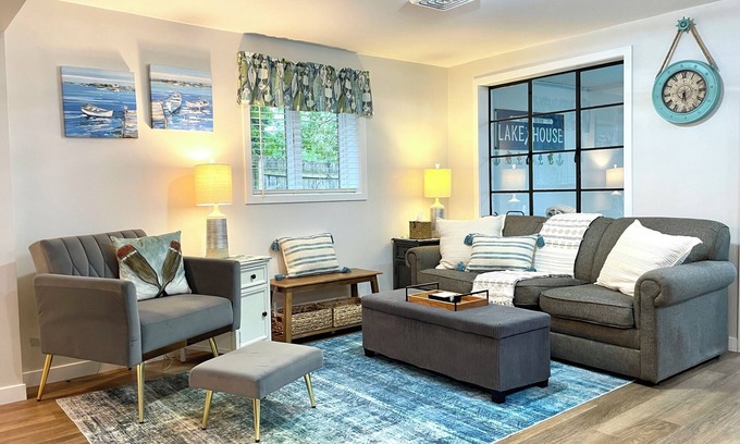 Escape to Stone Lake Cottage Retreat—your cozy, lakefront getaway! Let the kids splash in the shallow sandy bottom while you relax with coffee in hand. Kayaks are ready, the fire pit’s calling, and the Infinity Game Table brings the fun indoors. From quiet mornings on the patio to late-night laughs, this spot is built for memory-making. Unplug, unwind, and live the lake life your way. Whether seeking adventure or relaxation, book your stay today and experience lake living!