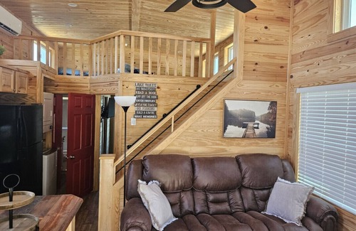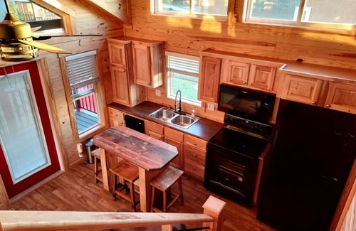 Lakefront Tiny House Paradise Retreat! This tiny house has it all! Best sunset in all of East Texas DIRECTLY on beautiful Lake Bob Sandlin. Come relax in your own little slice of lakefront heaven and enjoy fishing at the private boathouse (included) or simply sit on the back porch and enjoy the amazing sunset. Home comfortably sleeps 4 on amazing comfy beds... Fish are always biting down on your private beach area or at the private boathouse... Fishing equipment INCLUDED. Welcome home!