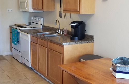 Full galley kitchen along with washer & dryer.