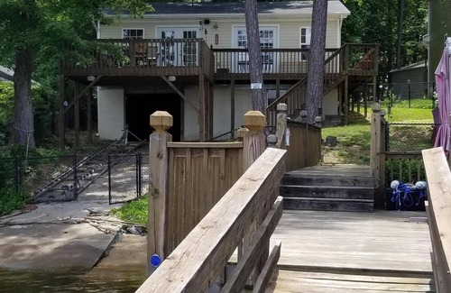 Cute lake front cottage with floating dock on High Rock lake. Open concept living room comfortably seats everyone and opens to the large, elevated deck. The living room and deck overlook the lake and a sandy swimming area. You can bring your own boat and tie up to our dock during your stay. Quiet neighborhood for a relaxed stay.