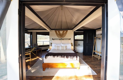 Lake Front Exclusive Glamping Tent: Hot Tub, TV, & Soaking Tub | Resort in Cedar Bluff