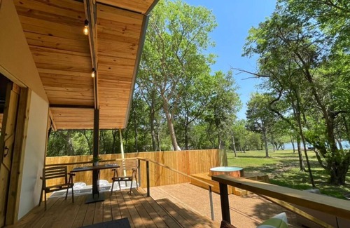 Lake front glamping cabin Bathroom inside is located in Bastrop. Lake front glamping cabin Bathroom inside provides accommodation, featuring Air Conditioner, Parking, Balcony/Terrace, among other amenities. This Cabin features Air Conditioner, Parking, Balcony/Terrace, to make your stay a comfortable one.