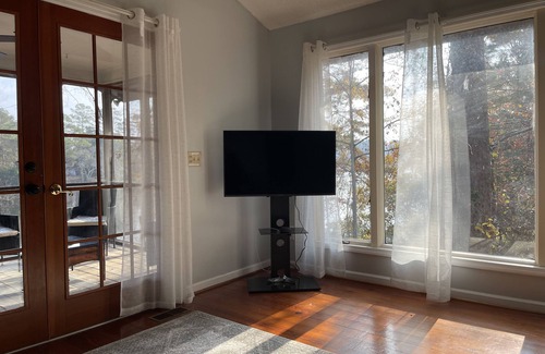 Enjoy your stay in Columbia in this cozy guest house overlooking Cary Lake! It is centrally located in Arcadia Lakes, 10 minutes from downtown, USC, and Fort Jackson. You’ll be close to everything in the capital, but far enough to enjoy a relaxing trip. Awake refreshed and ready for a day exploring the city via this clean, sunshine filled home with an impressive view. Cook in your own kitchen, clean up in the remodeled bathroom, and sink into the soft bed after seeing the city.