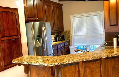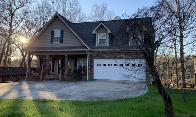 Our home is a beautiful water front home with 5 large bedrooms and 4 1/2 baths. We also have 3 spacious living areas that allow every member of the group ample room to relax and enjoy the serenity of the lake. Our living space on the main floor is open to the kitchen and dining area so no one misses out on the conversations and fun. The screened porches are a welcoming area to enjoy your morning coffee or your evening drinks and appetizers before dinner is served from the grill. We are located in a quiet neighborhood with deep water only minutes from Tugaloo State Park and Harbor Light Marina. So bring your boat or PWC, tie up at the dock and enjoy exploring the lake by water. (Boat slip is not available.) If relaxing on the dock or a float is more your style then know a sunset view is in your future. Only 5 miles off I-85, our home is convenient and comfortable. You'll feel at home and your only wish will be to stay longer. And don't forget the family 4 legged friend. We are a pet friendly home for a non-refundable fee.