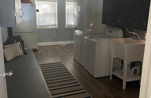 Spacious laundry room with laundry appliances