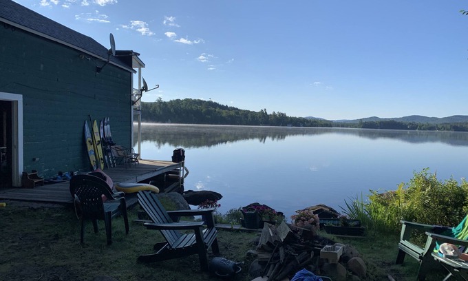 Our House/Camp sits right on a stunning Adirondack lake less than 10 miles from the Canadian border. It is in the hamlet of Owls Head 1 hour due north of Lake Placid and 15 minutes from Malone. This rustic lakefront house has four bedrooms and two full bathrooms. There is also a 2 story boat house with four queen beds and a porch on plus a second boathouse with a large sun deck with amazing views of surrounding mountains. Rental includes kayaks and canoe 2 Stand Up Paddle boards, electric powered pontoon boat, sunfish sailboat and row boat. Trailering a power boat to the lake is an option as well. For golfers, the Malone Golf Club with two 18 hole golf courses is 15 minutes away and Malone has lots of shopping. This is a fishing, boating, hiking and golf paradise. Stunningly scenic. Remote yet convenient access to stores and services. Easily accommodates two families but for larger groups this property can be booked in conjunction with our sister property right next door - listing 3406841